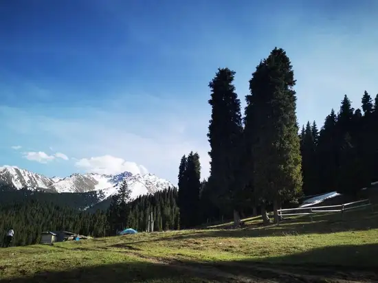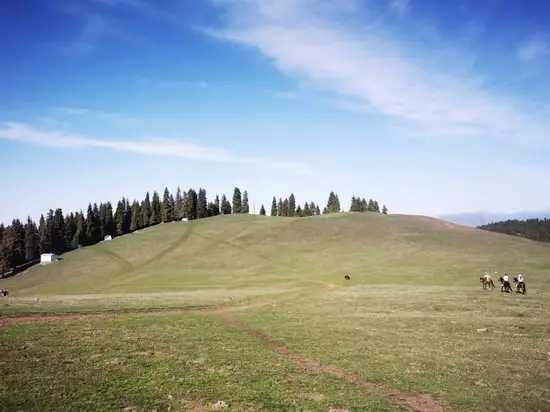第四天 我们潜在群山万壑前往奇台的江布拉克 路经吉木萨 木垒 中午美美的在奇台县吃一顿 特色拨鱼子大盘鸡 红烧鱼 赶往江布拉克 这里的风景和哈密有明显变化 绿色越来越弄越密 江布拉克山区景区 有山上草原 也有山上麦田 连绵起伏的缓坡 也有陡峭耸立青杉的峭壁 有山涧 有小溪 有小海子 可以容纳许多游客 沿着山路可以行进两三小时到山深处