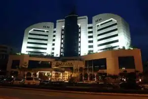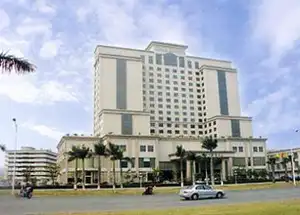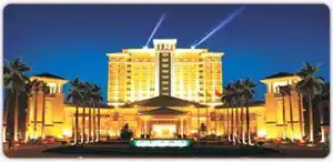 江门名冠金凯悦大酒店位于江门市五邑大道北(城市花园东侧),占地面积为111453平方米,总建筑面积102298平方米,楼高25层。拥有客房516间、大型歌剧院、海鲜大酒楼、高级中餐厅、