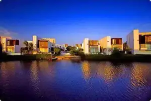 博鳌凯宾斯基饭店(博鳌蓝色海岸),共有115栋现代派水边豪华别墅,沿水而居,风格独特,由两位亚洲著名建筑师韩国的承孝相和香港的严迅奇设计。美丽的万泉河环绕周边,永恒的时光仿佛就