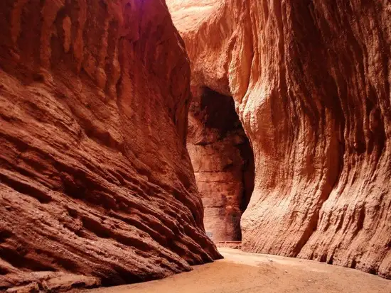 天山神秘大峡谷位于阿克苏地区库车县北部72公里处217国道旁,呈东向西纵深长约5.5公里,为红褐色岩石经风雕雨刻而成,峡谷曲径通幽,别有洞天,山体千姿百态,峰峦直插云天,沟中有沟,谷中有谷。南天门、幽灵谷、月牙峡、虎牙桥、魔天洞、雄师泪等景观造型生动,形态逼真。距谷口1.4公里处的山崖上有一处唐代石窟,窟内南、北、西壁上有残存壁画和汉文字。距峡谷700米处另有一峡谷,与神秘峡谷相伴。天山神秘大峡谷集雄、险、幽、静、神为一体,身临其境者无不赞美叫绝。