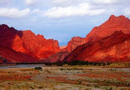 赤砂山色彩呈红褐色,在阳光照射下,烟雾缭绕,似燃烧的火焰。这里还有造型奇特,美丽的山峰。千百年来在大自然神力的雕琢下,有的像桂林的“石林”;有的像西藏的“布达拉宫”;还有的像摩天大楼;原始人类居住的石屋……。库车古代著名的可可砂炼铁遗址,炼铜遗址就在此景区附近。