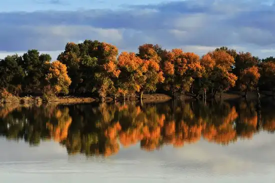 塔里木胡杨岛是塔河流域上游一座5000多亩的小岛,四而环水,水资丰富,位于距离阿克苏市20多千米的库木巴什乡,岛上有数千亩的原始野生胡杨林,另外,还有野兔、野鸡、刺猬等多种野生动物生活在这里。以古老而苍劲的胡杨为主体形成的野生林使这个原始自然生态旅游景观闻名遐迩。胡杨岛上的这片胡杨林是目前全新疆保护得最好的一片原始外生胡杨林。树龄大多在50年左右,树高十余米,春夏之际绿树成荫、鸟语花香、流水潺潺,秋冬之际一片金黄,落叶秋凤共舞,雪片伴花絮飞扬,情趣盎然。