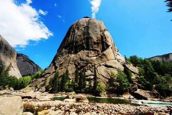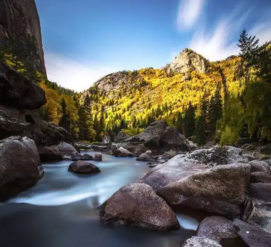 额尔齐斯大峡谷以花岗岩地貌、峡谷河源风光、高山植被景观为特色,是可可托海风景区四大景区之一。峡谷变质花岗岩地貌景观以神钟山为代表,形态万千多呈钟状、穹状、锥状,裸露的巨型花岗岩石峰沿额尔齐斯河呈带状分布,形成神钟山、骆驼峰、神象峰、飞来峰、神鹰峰等数百个巨型花岗岩石峰,诸峰连壁号称“一百单八峰;富龟石、人头马面、海豹石、石门等象形石遍布景区,妙趣横生。峡谷河源风光旖旎迷人,额尔齐斯河奔腾汹涌,温泉、瀑布、溪流静谧舒缓,四季桦林及高山草甸缤纷绚丽,野葡萄沟、金三角、水磨沟等徒步区自然风光独特,或骑马或徒步,均可欣赏额尔齐斯大峡谷奇秀之美。