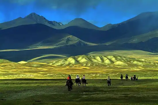 巴音布鲁克草原,蒙古语意为“泉源丰富,距库尔勒市636公里,位于和静县西北,伊犁谷底东南,中部天山南麓,海拔约2500米,面积约2.3万平方公里,是典型的禾草草甸草原,也是天山南麓最肥美的夏牧场。巴音布鲁克草原东西长270公里,南北宽136公里,四周山体海拔在3000米以上。巴音布鲁克草原居住着蒙、汉、藏、哈等9个民族,民族风情灿烂多彩,一年一度的草原那达慕盛会,赛马、射箭等比赛活动更让游人留恋忘返。