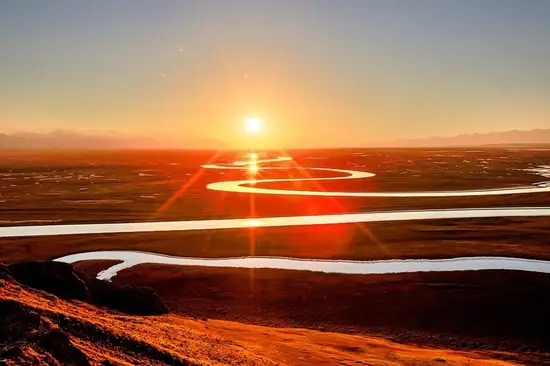 巴音布鲁克草原居住着蒙、汉、藏、哈等9个民族,民族风情灿烂多彩。蒙古族牧民每年举行的“那达慕盛会尤为精彩。清乾隆36年,土尔扈特,和硕特等蒙古部落,在渥巴锡的率领下,从俄国伏尔加河流域举义东归,清政府为其义举,特赐水草肥美之地给他们,1773年在巴音布鲁克草原和开都河定居。巴音布鲁克草原共有63座山峰,有74个“达坂(山口)耸立于群山之间。站在天鹅湖畔巴西里克山顶眺望,古老的开都河从天边缓缓向你走来。这就是“此景只应天上有,人间能有几回现”的九曲十八弯。它像是泉水和雪水汇聚而成的仙女的飘带穿过天鹅湖,更像是上苍为巴音布鲁克这个翡翠王国披上的圣洁的哈达。当夕阳从云缝中把万道霞光射向草原,落日摇金,蜿蜒如蟒的九曲十八弯就映出了后弈射下的那九个太阳。