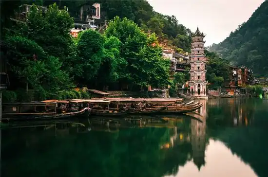 BUS赴凤凰,客人可自由游览凤凰夜景,自行漫步沱江边,品味独特的苗疆风情。