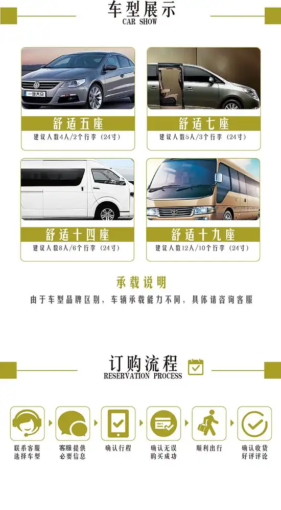 【搭配自由】自由搭配想去的景点,多种车型可选,给您舒心的乘车体验;