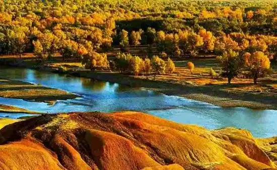 参观天下第一滩【五彩滩】景区(赠送景点,不去不退费)毗邻碧波荡漾的额尔齐斯河,与对岸葱郁青翠的河谷风光遥相辉映,可谓一河隔两岸,自有两重天。激猛的河流冲击以及狂风侵蚀,形成了北岸的悬崖式雅丹地貌,河岸岩层抗风化能力强弱不一,轮廓便会参差不齐,而岩石含有矿物质的不同,又幻化出种种异彩,因此得名五彩滩而南岸却是绿树葳蕤,连绵成林,远处逶迤的山峦与戈壁风光尽收眼底。