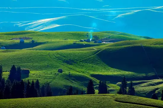 早餐后乘车沿途欣赏果子沟美景及壮观的果子沟大桥,然后乘车前往世界上少有的第一流天然草场【那拉提草原】(门票+河谷草原区间车已含),那拉提海拔较高,离蓝天白云那么的近,视野开阔,起伏平缓,一沟一谷,一起一落,都流露着柔软妩媚。芳草萋萎,繁花似锦,犹如一幅舒展的碧色地毯群的白羊,2005 年 10 月,《中国国家地理》杂志社评全国六大美丽的草原之一。是进行草原观光、摄影的绝佳选择。“那拉提”是“太阳”的意思。传说成吉思汗西征时,有一支蒙古军队由天山深处向伊犁进发, 时值春日,山中却是风雪弥漫,饥饿和寒冷使这支军队疲乏不堪。当翻过山岭,眼前却是一片繁花织锦的莽莽草原,泉眼密布,犹如进入了另一个世界。晚上入住酒店