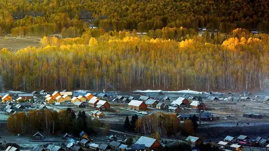 顶小木屋、牲口围栏随意地散落在村子的各个角落,在白桦林中悠闲漫步,全身心沉浸在那份宁静悠闲中。或骑马在村落中漫步,享受牧民的田园牧歌,感受这里人与自然的和谐相处。或登哈登观景平台,俯视整个禾木村落,站在观景台上,禾木河,山川,村落尽收眼底,以及随意散落的木栅围栏,与雪峰、林林、草地、蓝天白云构成了独特的自然与文化景观,傍晚入住特色民宿。