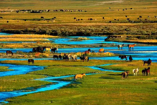 曲十八湾,它像是泉水和雪水汇聚而成的仙女的飘带穿过天鹅湖,更像是上苍为巴音布鲁克这个翡翠王国披上的圣洁的哈达。中餐后返回伊宁市,途观巩乃斯河谷风光,晚住伊宁市。