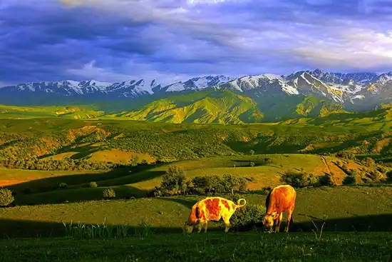 涌泉、风光秀丽,被清人祁韵士称为奇绝仙境。 赛里木湖:这里是新疆海拔最高、面积最大、风光秀丽的高山湖泊,又是大西洋暖湿气流最后眷顾的地方, 因此有大西洋最后一滴眼泪的说法。湖滨绿草如茵,鲜花繁茂,湖水清澈湛蓝,远岸雪峰分立,林海叠 峰,湖边的草场,山坡上的毡房错落,牛羊如云似锦。 薰衣草园:这里地处天山北麓伊犁河谷,与世界著名熏衣草原产地法国普罗旺斯的地理位置、气候条件和 土壤环境非常相似,土壤肥力中等,耕层结构良好,适宜薰衣草生长,因而伊犁活成的熏衣草,是全世界 继法国普罗旺斯、日本富良野之后的第三大熏衣草种植基地,也是中国惟一的熏衣草主产地。见过伊犁熏 衣草花田的游客大都有这样的感觉:天然去雕饰,毫不矫揉造作,是纯粹的原生态。霍城薰衣草叶形花色优 美典雅,蓝紫色花序颖长秀丽,特殊的香气气味醇厚、浓郁,有芳香药草之美誉,被称为香草之后 。