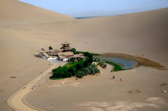 [木垒鸣沙山]位于昌吉州木垒县哈依纳尔北5公里处,当地哈萨克人称其为阿依艾库木,意为有声音的沙漠。其山雄踞沙海,平地而起。