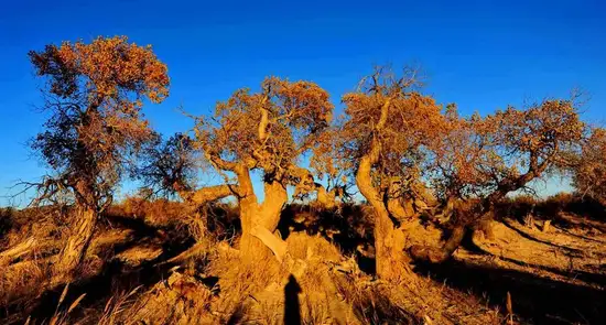 向你展示着不屈不挠的精神,那鬼斧神工般的形态,更使你感到大自然的壮美。千百年来,它们以顽强的意志抗击着沙漠的侵蚀。