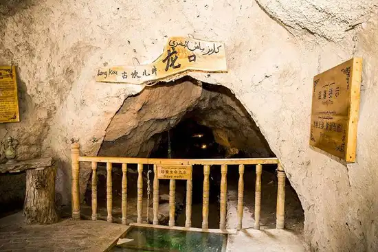 坎儿井是古代新疆人创造的地下水利灌溉工程,早在2000年前的汉代就已经出现雏形,以后传到中亚和波斯。吐鲁番地区共有坎儿井1100多道,年径流量达2.94亿立方米,它是绿洲的生命之源。