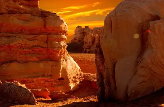 从巴里坤出发,前往五堡乡,参观哈密魔鬼城,抵达哈密,参观哈密王陵